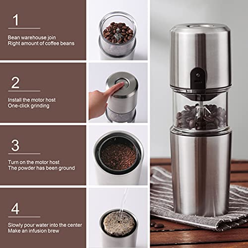 Specification: Nefelibata Elektrische koffiemolen 80 g capaciteit molen voor koffiebonen noten specerijen met 304 roestvrijstalen behuizing en stalen messen met koffiepoederfilter en bescherming tegen verbranding